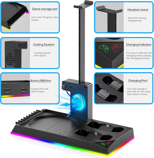 Upgrade Stand for Xbox Series X with Back Cooling Fan& RGB Lights